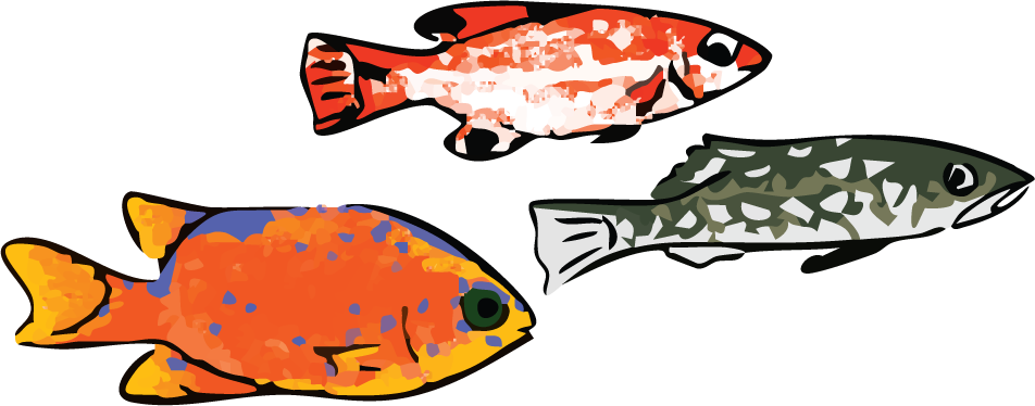 Hypsypops rubicundus (juvenile Garibaldi); Semicossyphus pulcher (juvenile California sheephead); Paralabrax clathratus (juvenile kelp bass)
